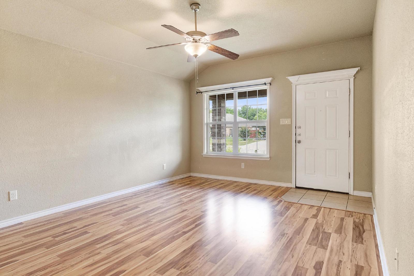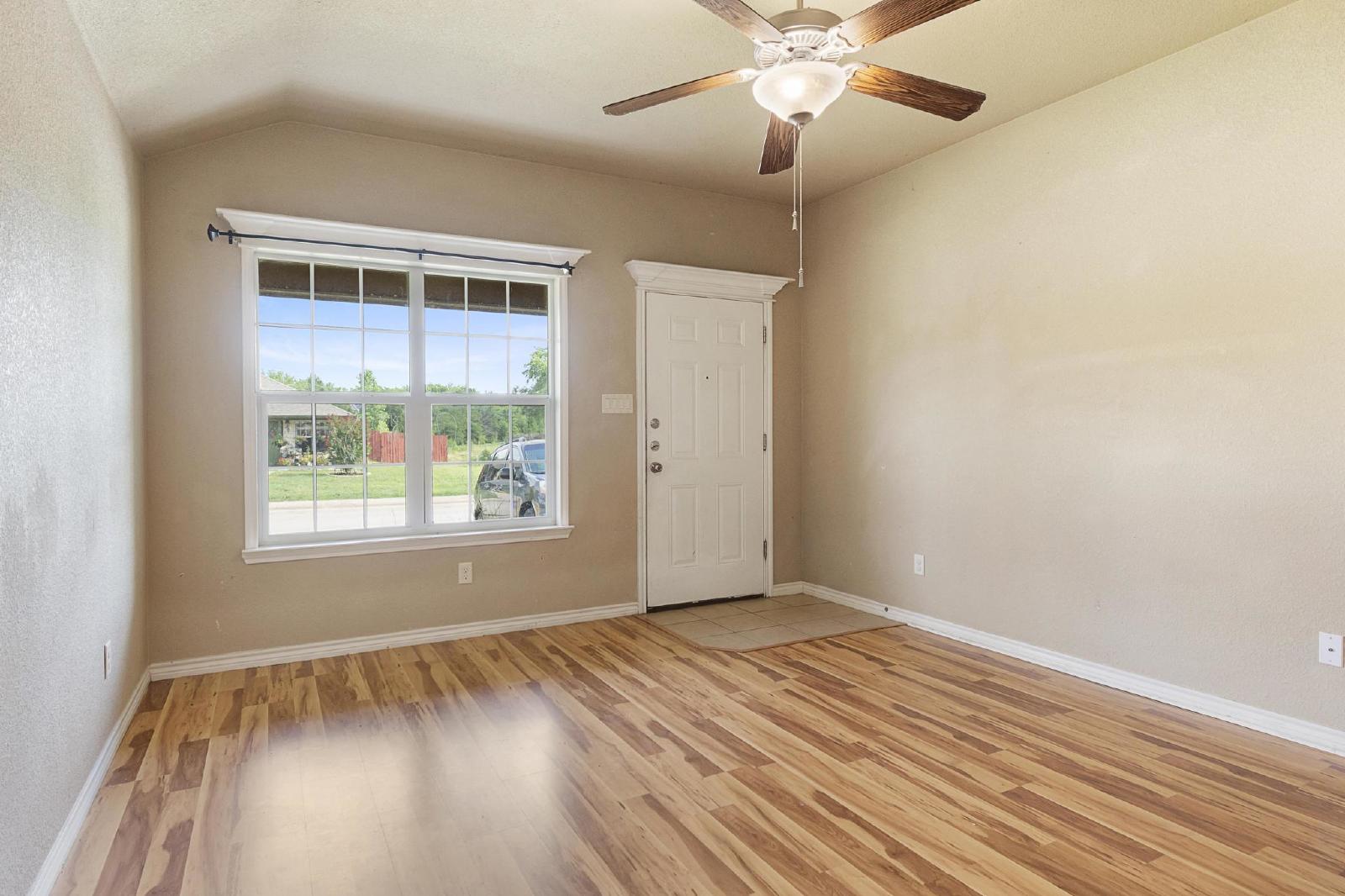 Step into this stunning 3-bedroom, 2-bathroom haven, perfect for creating cherished memories. Nestled in a serene neighborhood, this home offers a spacious private backyard complete with a handy storage shed, ideal for all your outdoor needs. Indulge in the luxurious master suite, boasting a generous walk-in closet, elegant his and hers sinks, and a large, relaxing tub your personal oasis after a long day. The two additional bedrooms are cozy and carpeted, providing comfort and warmth. Working from home or helping with homework is a breeze with the built-in desk and shelving, creating a perfect home office or study station. This beautiful home is waiting for you to make it your own. Come and experience the perfect blend of comfort and convenience today!